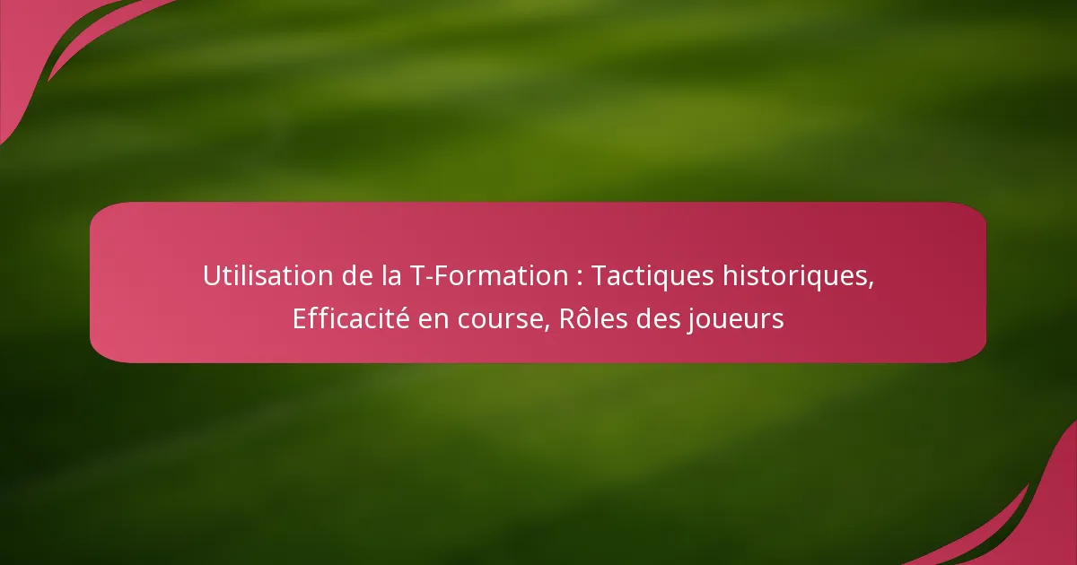 La T-Formation est un alignement stratégique de football qui met l’accent sur des rôles spécifiques des joueurs pour maximiser l’efficacité de l’équipe. Chaque position a des responsabilités distinctes qui contribuent aux jeux offensifs et défensifs, rendant la compréhension de ces rôles cruciale pour une mise en œuvre réussie.