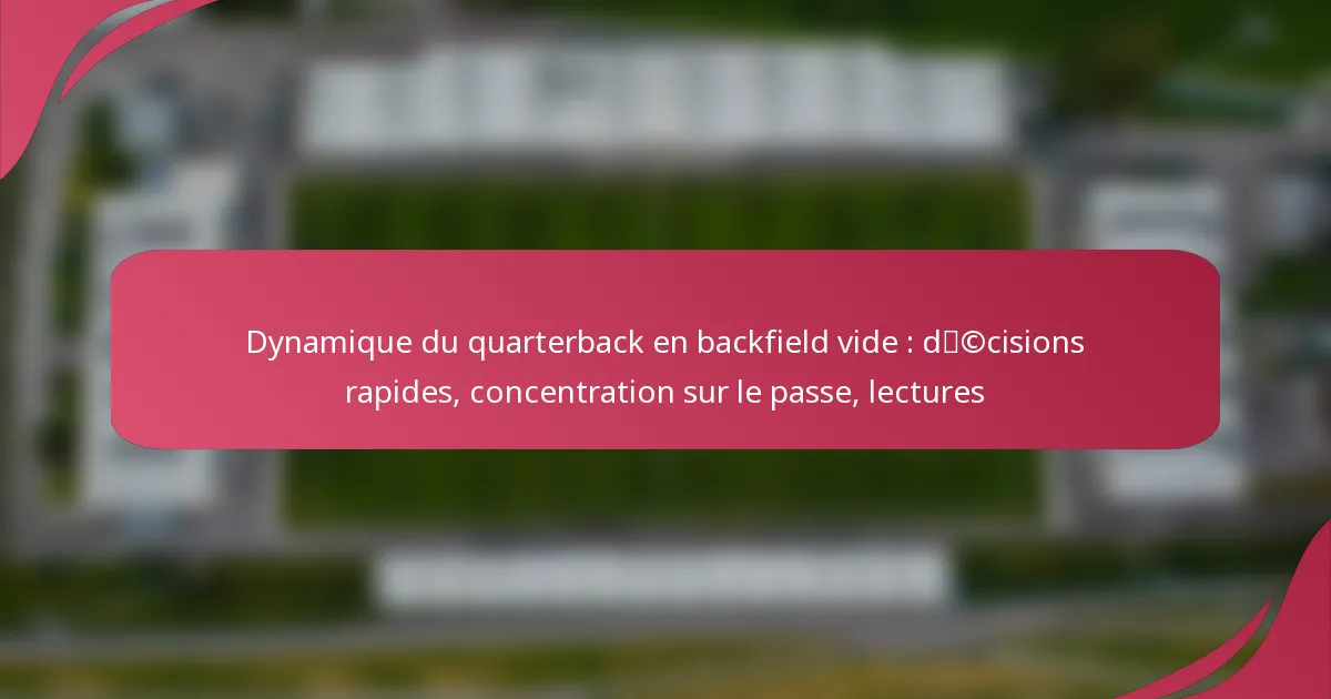 Les quarterbacks dans un backfield vide doivent effectuer des lectures rapides et précises pour exploiter efficacement les faiblesses défensives. Les lectures clés incluent l’évaluation des alignements défensifs avant le snap, l’analyse des mouvements après le snap et l’ajustement de leurs stratégies en fonction de la pression et des schémas de couverture.