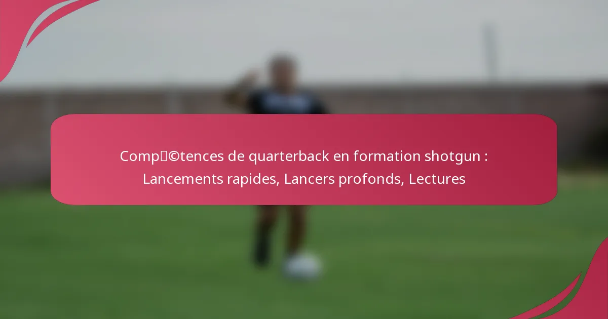 Les quarterbacks en formation shotgun doivent maîtriser plusieurs compétences essentielles, y compris des libérations rapides, des passes profondes et des lectures efficaces de la défense. Ces compétences sont cruciales pour maintenir l’élan offensif et s’adapter à diverses situations de jeu.
